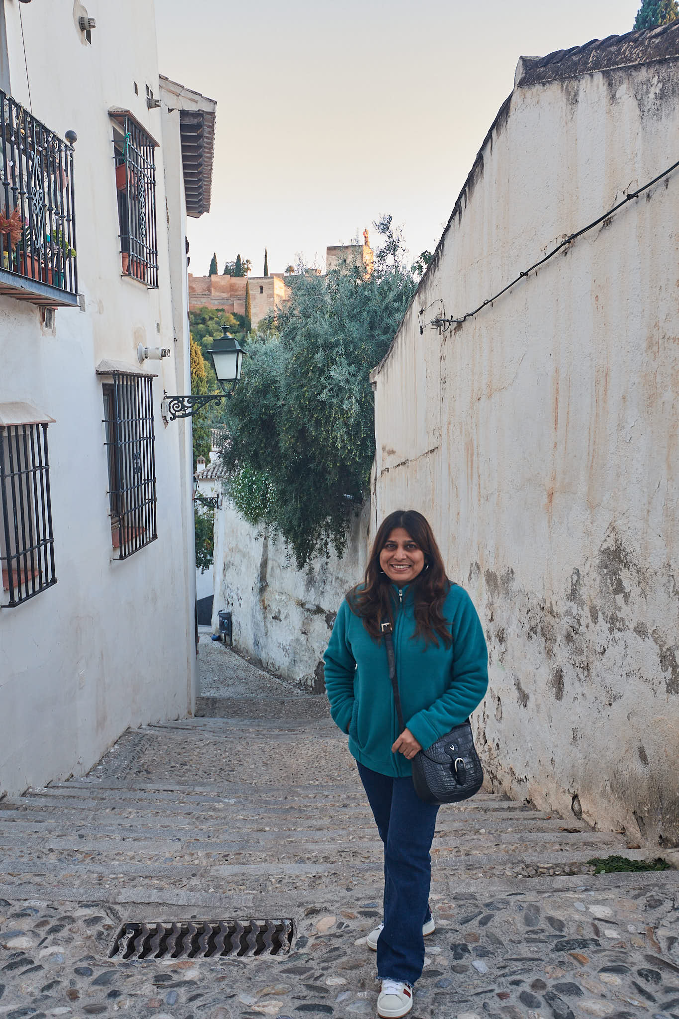 Taking a different staircase up to the Albaicin with the Alhambra in the background