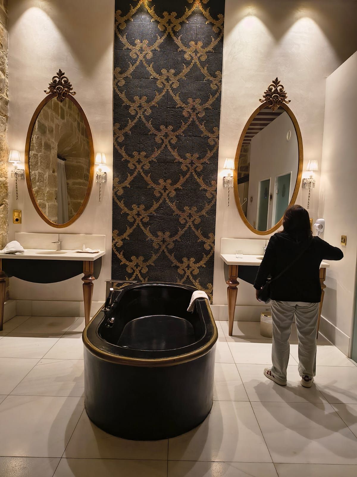 The better half uses the huge mirrors in the room