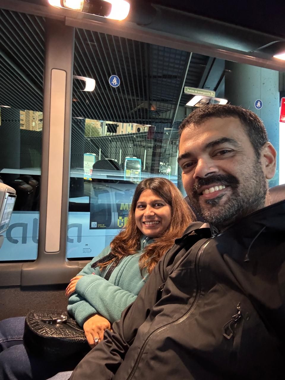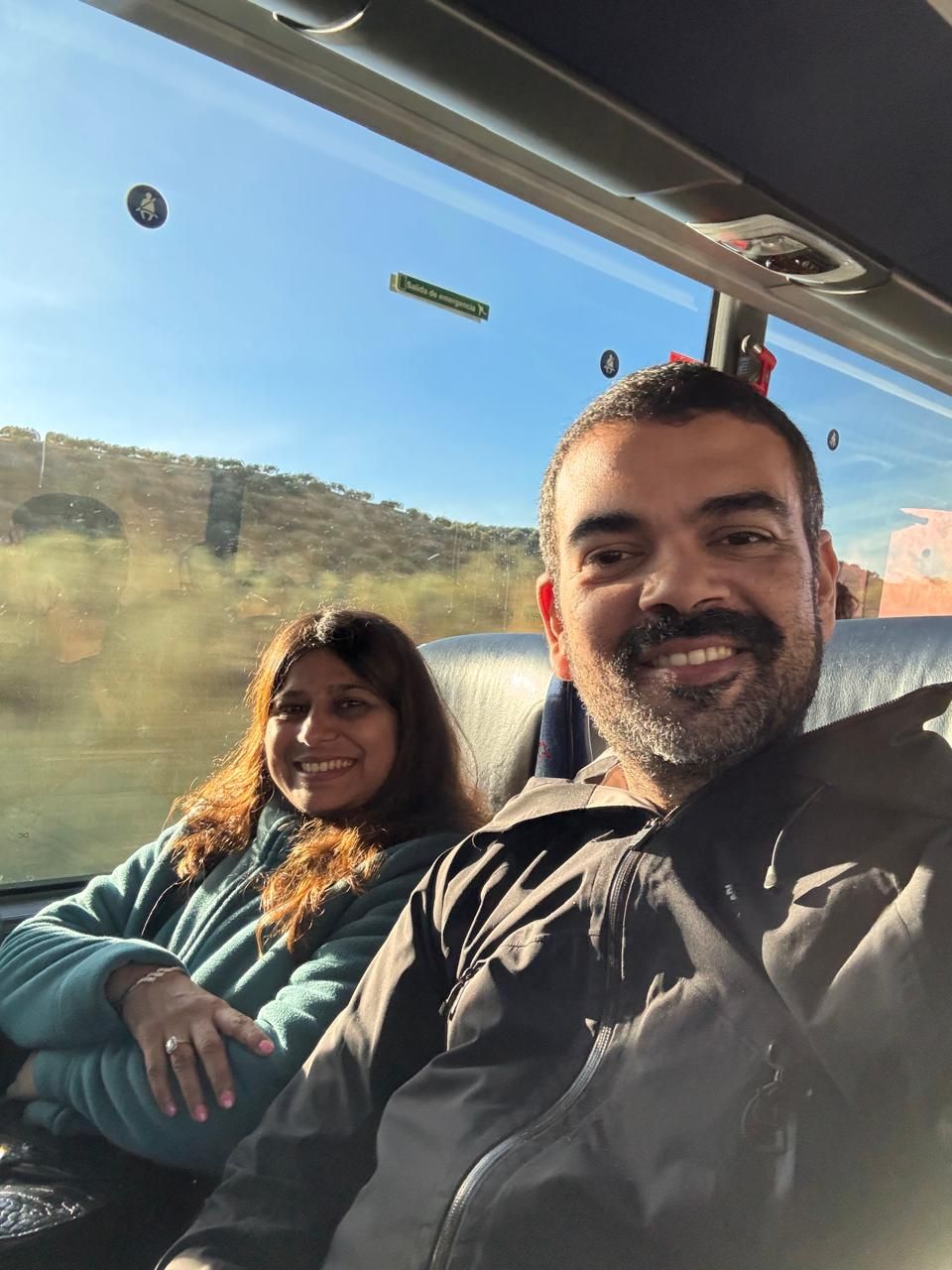 On our reserved seats on the bus to Úbeda at the Granada Bus Station