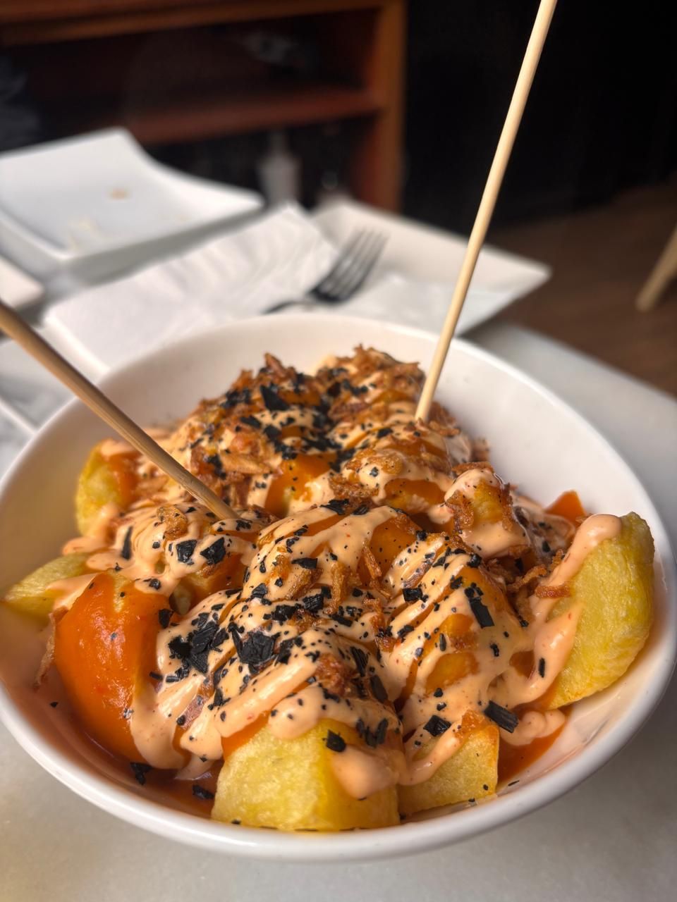 The better half’s plate of Patatas Bravas