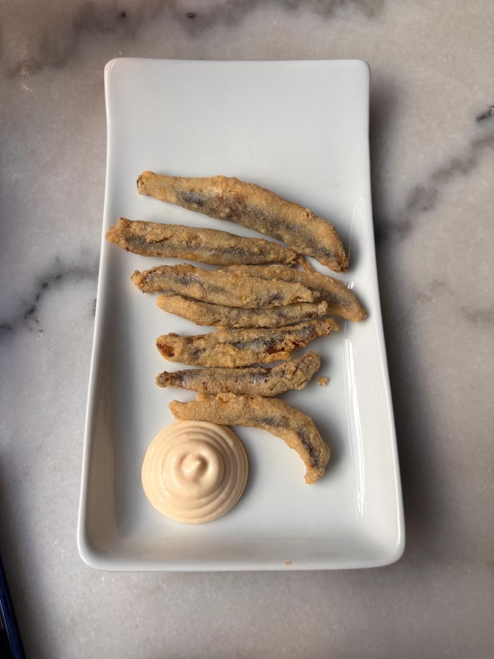 The complimentary tapas – A plate of Boquerones Fritos or Fried Anchovies