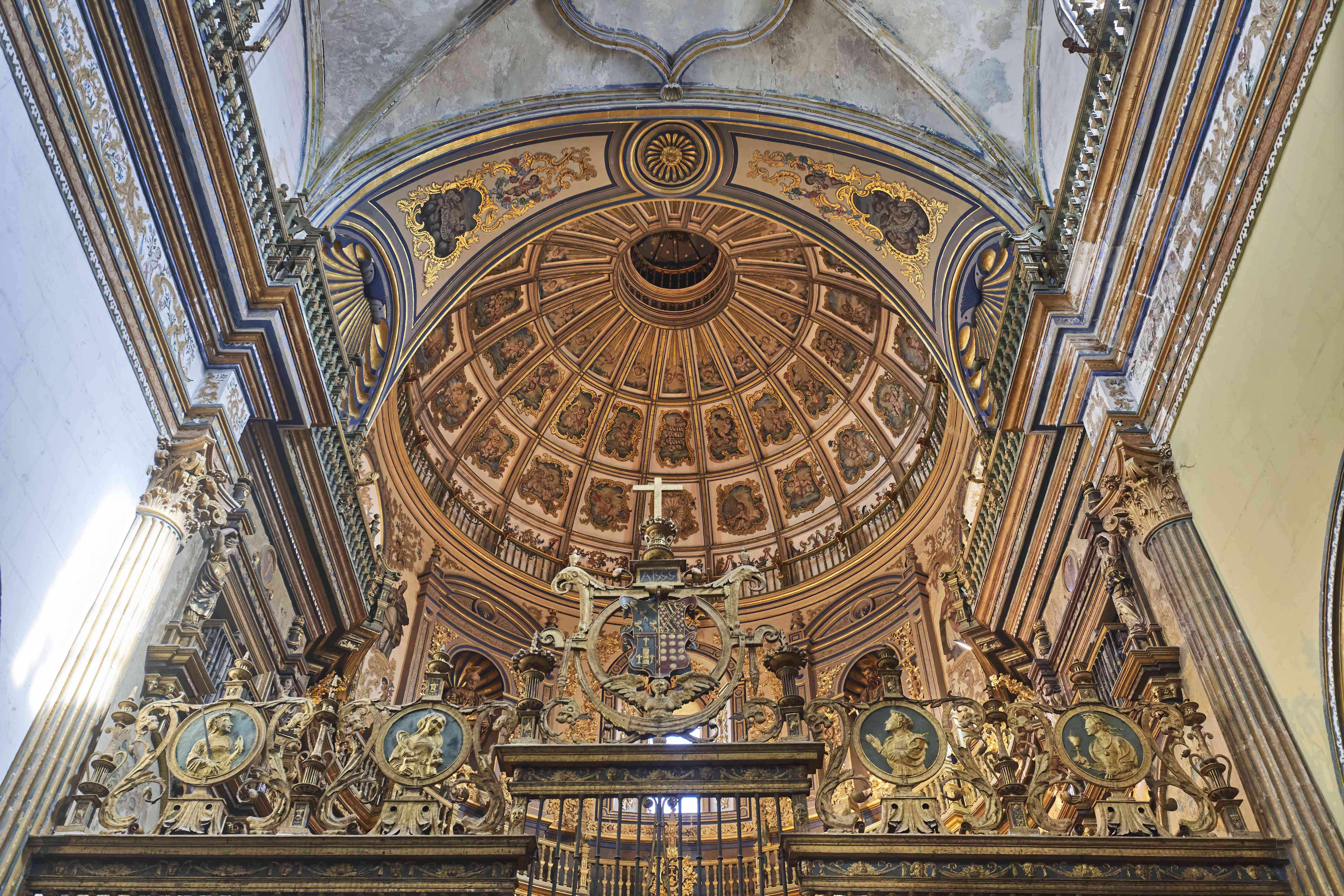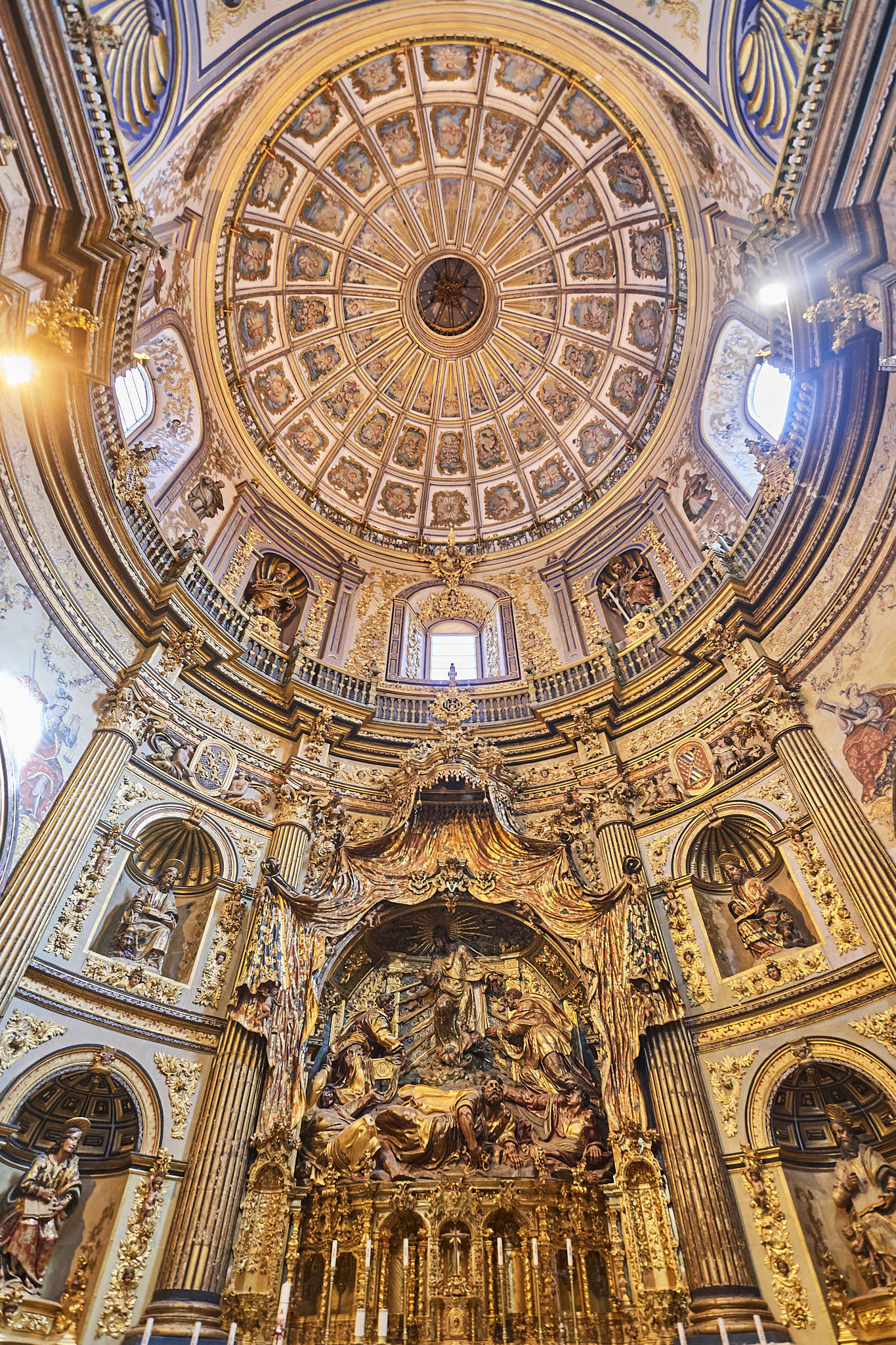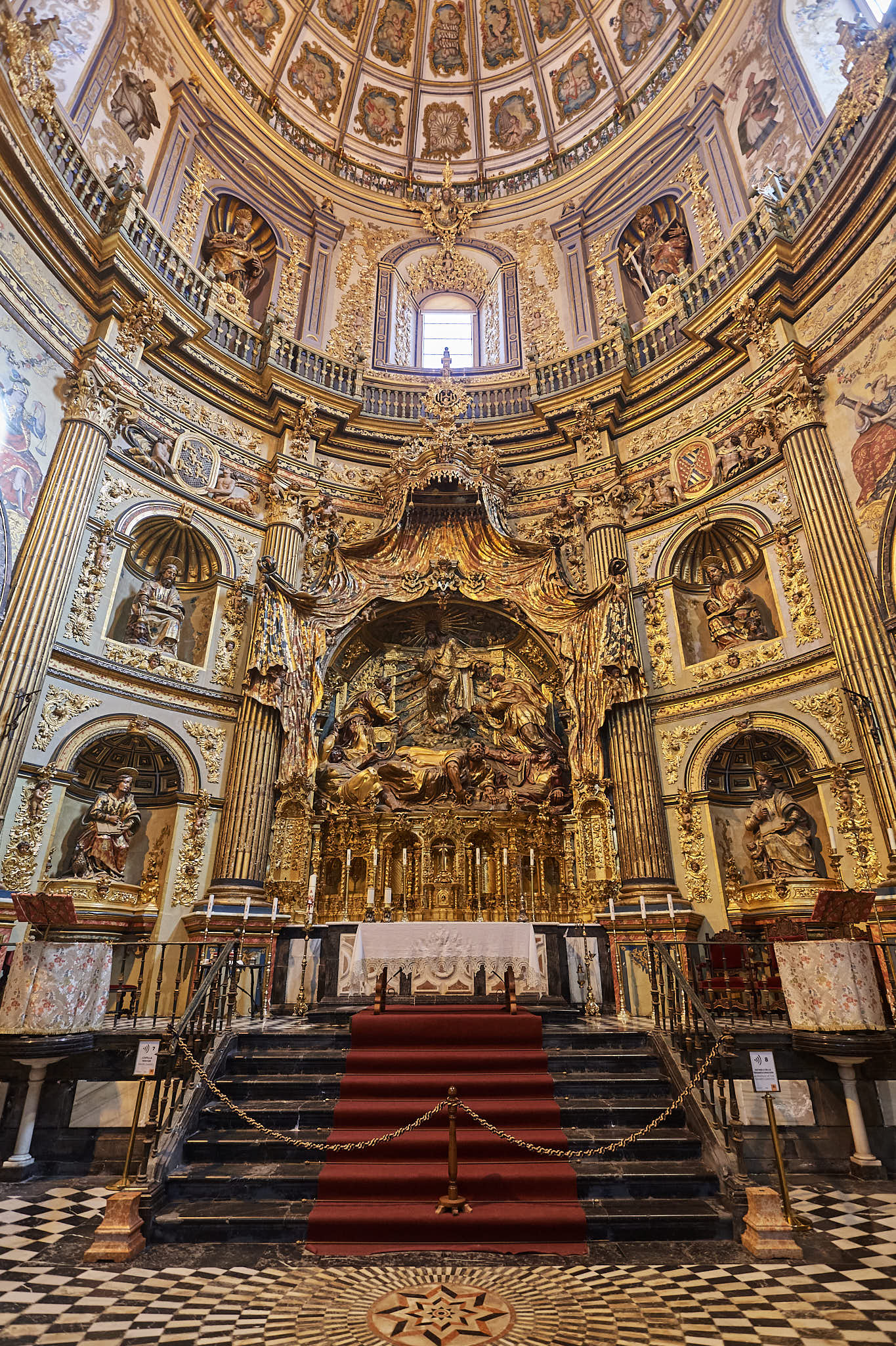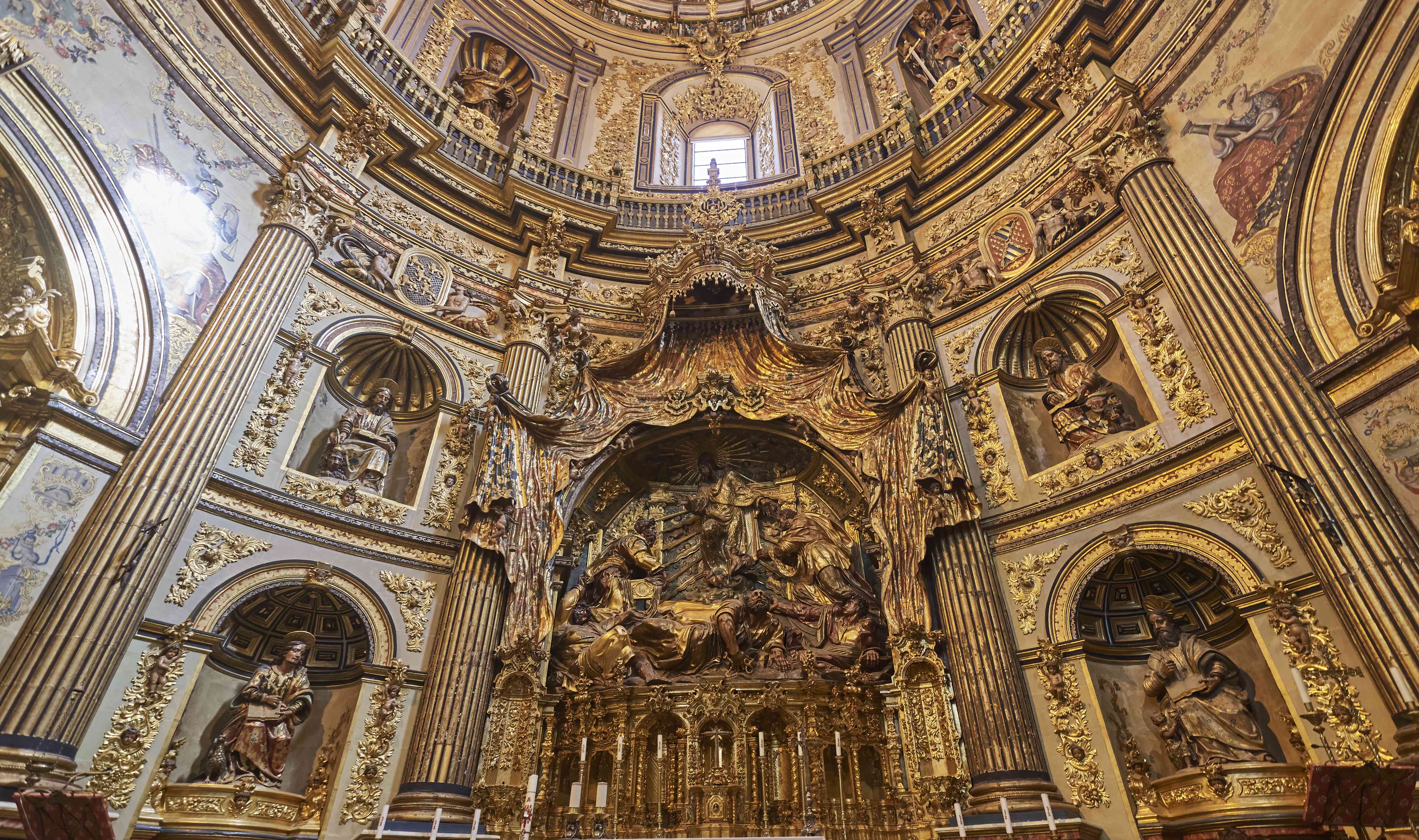 The beautifully restored gilded altarpiece under the equally stunning dome